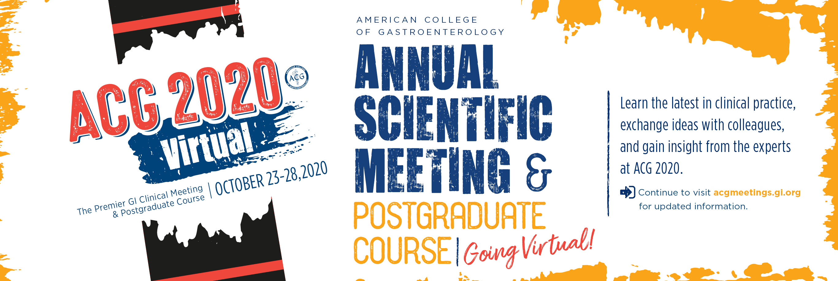 After thorough and wide-ranging consideration of the many challenges to safely convene a live meeting this October, the ACG Board of Trustees unanimously decided to offer a virtual educational experience for the 2020 ACG Annual Scientific Meeting & Postgraduate Course.