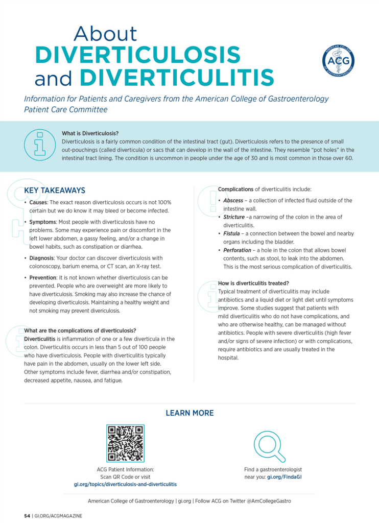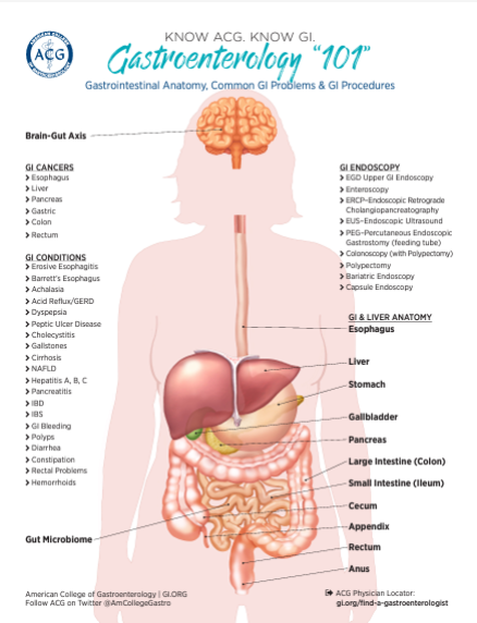 The College’s commitment to making digestive health a priority includes developing clinical guidelines for physicians, providing the most up-to-date recommendations to guide physicians in treating digestive diseases and conditions. ACG also develops one-page health information handouts for patients using simple language.