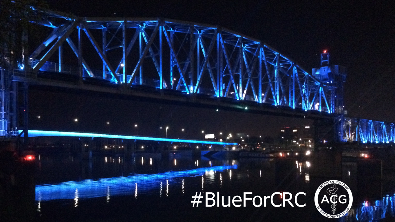 The Colon Cancer Coalition invites ACG members to join a national effort with patient advocates to illuminate landmarks blue and raise awareness of colorectal cancer prevention. Visit the Coalition’s Blue for CRC page for resources, best practices, templates, and inspiration. Share your iconic blue landmarks during March CRC Month on social media with #BlueForCRC.