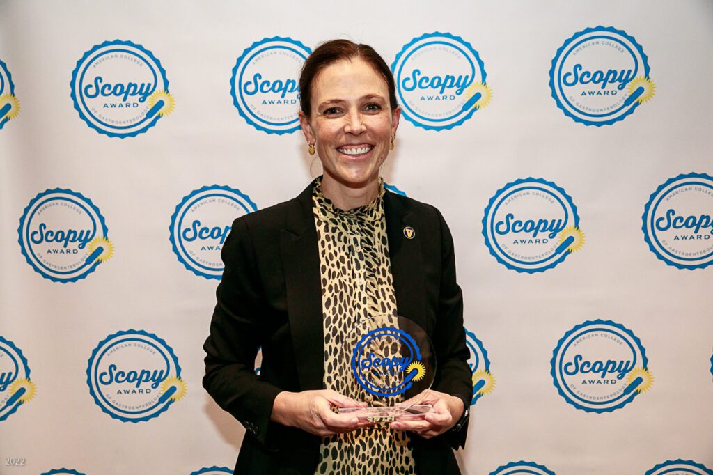 ACG’s SCOPY Award (Service Award for Colorectal Cancer Outreach, Prevention & Year-Round Excellence) recognizes the achievements of ACG members in their community engagement, education, and awareness efforts for colorectal cancer prevention. ACG members are invited to submit examples of projects and programs that demonstrate outstanding creativity and commitment to spreading the potentially lifesaving message of the importance of colorectal cancer screening and prevention.