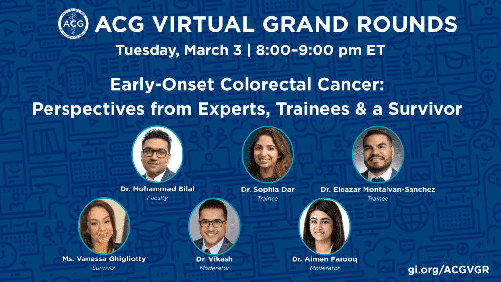 ACG Virtual Grand Rounds—Early-Onset Colorectal Cancer: Perspectives from Experts, Trainees & a Survivor