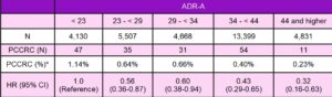Data Analysis: Cox regression was used to model the hazard of PCCRC on ADR, controlling for age, sex, and other covariates.