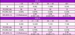 Table 1. Unadjusted risks and adjusted hazard ratios for post colonoscopy colorectal cancer (PCCRC) as stratified by quintiles of endoscopist all exam adenoma detection rates (ADR-A).
