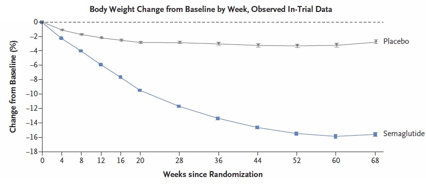 This article reviews Wilding JPH, et al. for the Semaglutide Treatment Effect in People with Obesity (STEP) Investigators. Once-Weekly Semaglutide in Adults with Overweight or Obesity. N Engl J Med 2021; 384: 989-1002. https://www.nejm.org/doi/10.1056/NEJMoa2032183