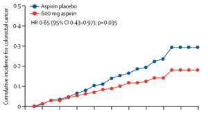 Intervention: Aspirin 600 mg versus placebo between 1999-2005 for 25 months.