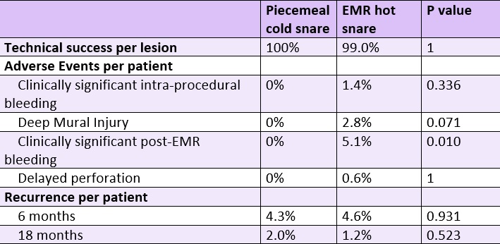 Results: Piecemeal cold snare had 100% technical success per lesion, with no adverse events per patient (Table 1).